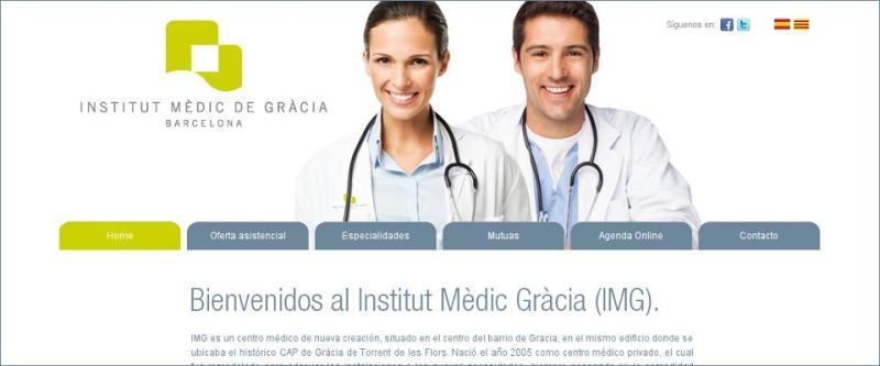 Sitio institucional en dos idiomas, con gestión de especialidades y mutuas, mapa web y formulario de contacto.